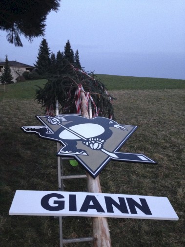 Das Pinguins-Bäumli wurde am Freitag, den 13ten (!) gestellt. Aber es verlief alles tiptop. Fixi und Foxi holten den Baum aus dem tiefen Wald und orchestrierten das Bäumlistellen wie ein abgeklärtes, erfahrenes Päärchen - der Baum steht, Fixi & Foxi genossen nachher die Surseer Nacht.