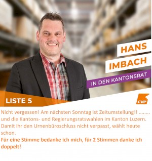 Vergisst vorab bitte nicht, 2x unseren Ehrenpräsi auf Eurem Stimmzettel zu markieren. Vielleich gibt es Sonntag Abend spontan eine gemeinsame Wahl- und Siegesfeier, "powered by Hans Imbach".