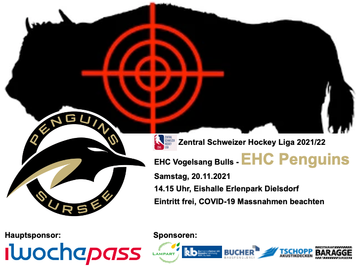 EHC Vogelsang Bulls - EHC Penguins; 20.11.2021 14.15 Uhr, Eishalle Erlenpark Dielsdorf